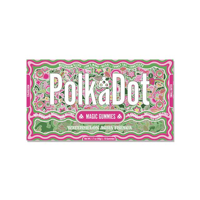 For Polkadot Gummies Watermelon Agua Fresca, the refreshing watermelon flavor and citrus elements are blended into the candy base to recreate the taste of the classic fruit drink.